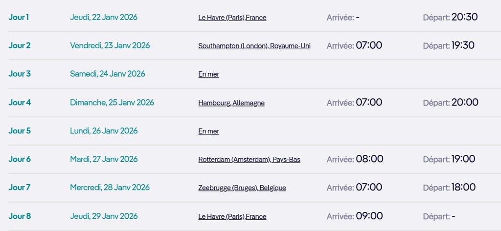 Les taxes portuaires, Le port des bagages dans les ports, Les spectacles, Les animations à bord, La participation aux activités organisées à bord
