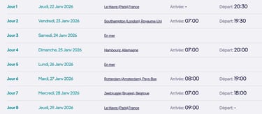 Excursions facultatives et dépenses personnelles (Massages, Coiffeur, Boutiques...)